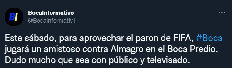 Boca aprovechará el párate de la Copa Liga Profesional por la doble fecha de Eliminatorias Sudamericanas para jugar un partido amistoso en el Centro de Entrenamiento de Ezeiza. Por su parte, Sebastián Battaglia utilizará este encuentro para que los futbolistas con poca continuidad en la Ribera, puedan empezar a sumar minutos.