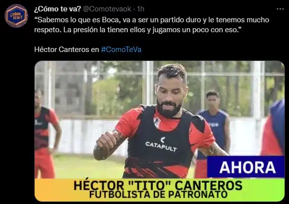 Héctor Canteros, futbolista del “Patrón”, palpitó la previa del partido en una charla con “¿Cómo te va?” (Radio Colonia, AM 550). “Estamos muy bien y con ganas de jugar con Boca, muy ansiosos. Al no haber público se juega de otra manera, a veces parece como un entrenamiento. Con el público a veces el hincha local te saca de los baches, te da un plus”, señaló el mediocampista ofensivo de 32 años sobre lo que se viene.