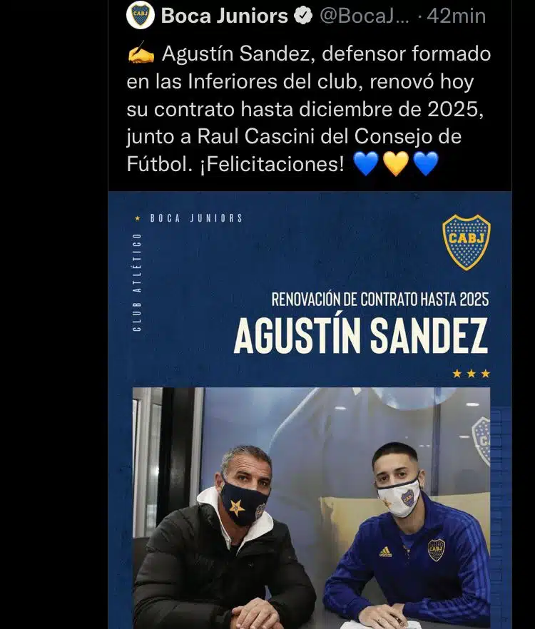 En las últimas semanas, y para preservar el patrimonio de la institución, el consejo de fútbol renovó contratos de futbolistas juveniles. En el día de hoy fue el turno de Agustín Sandez, lateral izquierdo categoría 2001, quien es una pieza importante en el equipo de Battaglia.
