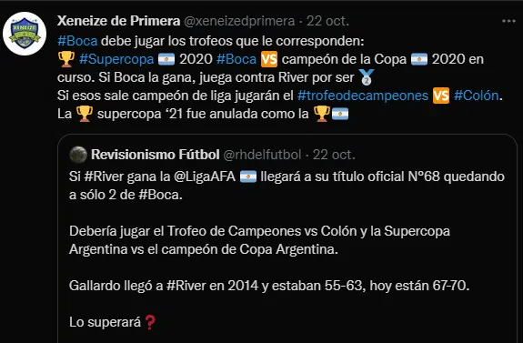 Por último se debe definir cuando Boca debe jugar las dos copas que aún no tienen vigencia: Supercopa 2020 y trofeo de campeones 2020. Ambos fueron suspendidos porque durante el año 2020 no hubo torneos entre Marzo y Septiembre. Lo único claro es que existe la posibilidad de un nuevo clásico en una instancia decisiva. Sin embargo la historia será diferente.