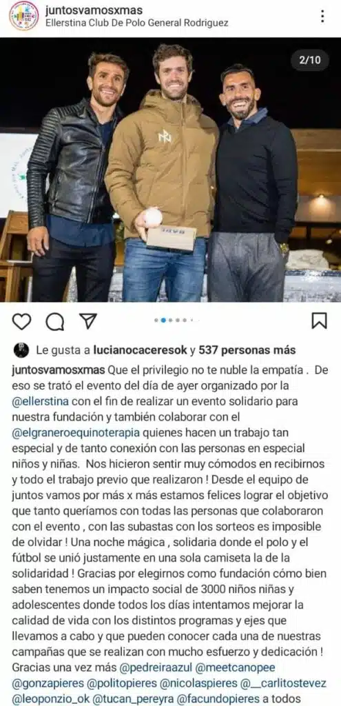 A través de su cuenta de Instagram, la cuenta oficial del evento compartió una imagen de Tevez y Ponzio junto al polista Nicolás Pieres y escribió: “El evento se realizó para ayudar a los chicos de la mano del deporte. Gracias a todos los que participaron”. De esta forma, dos jugadores que se enfrentaron en el superclásico, se unieron para una causa en común que ayudará a muchas personas.