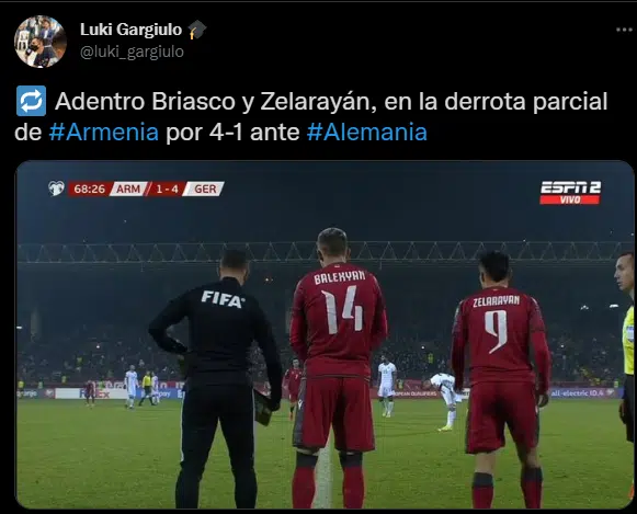 Tras la derrota de la selección Armenia ante Alemania le quitó la posibilidad de acceder a un repechaje por una de las plazas que otorga el fútbol europeo. La selección en la que juega Briasco debía ganar y esperar que Macedonia y Rumania no lo hiciera. Ninguna de estas tres acciones ha ocurrido por eso se quedará sin esa posibilidad de jugar el mundial.