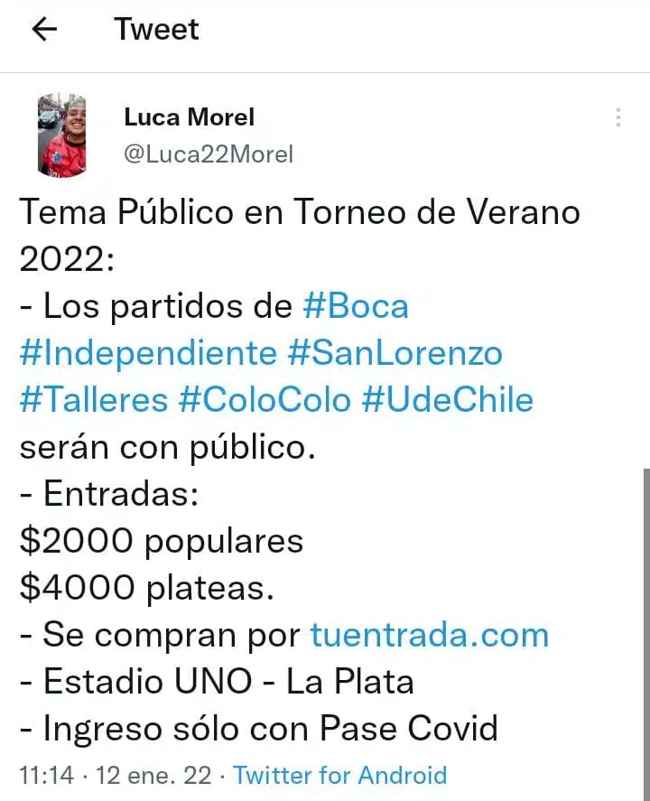 La gente xeneize que quiera ir a los partidos, deberá sacar su ticket en TuEntrada.com. Las populares costarán dos mil pesos, mientras que las plateas cuatro mil. La página oficial del evento publicó: “Pase sanitario obligatorio. La provincia de Bs. As. montará un vacunatorio móvil en las inmediaciones del estadio. Para ir a la cancha tenemos que: Ponernos el barbijo y tener el esquema de vacunación completo”.