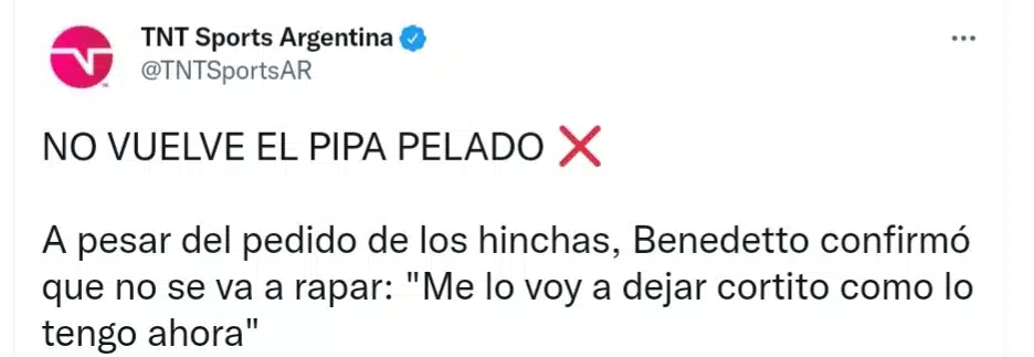 Con la vuelta de Darío Benedetto a Boca, no solo se habló de sus goles y su jerarquía, también se menciono mucho el tema sobre su pelo. Sin embargo, fue el propio jugador el que respondió como va a mantener su look en esta nueva etapa en el club de La Ribera: “No creo que me rape. Me lo voy a dejar cortito como lo tengo ahora”.