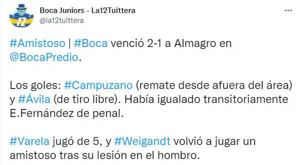 Para no perder ritmo futbolístico, el equipo que lidera Sebastián Battaglia diputó un amistoso ante Almagro en el predio que tiene el club en Ezeiza. Boca se quedó con la victoria gracias a los goles de Jorman Campuzano y Gastón Ávila. Sin embargo, los hinchas pusieron el foco en Marcelo Weigandt, uno de los jugadores más queridos por el plantel.