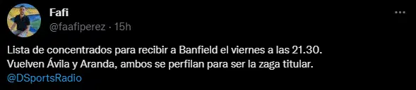 De hecho, ante el mal de ausencias que tiene Boca, Sebastián Battaglia piensa en utilizar como titular. Debido a las ausencias de Carlos Izquierdoz, Carlos Zambrano y Nicolás Figal, Gastón Ávila será el segundo central titular. De hecho compartirá zaga con Gabriel Aranda. Aunque está claro que los problemas radican solamente para este encuentro por diversos motivos de sanciones y lesiones.