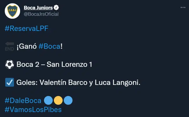 La Reserva de Boca volvió a la victoria después de tres derrotas consecutivas en el Torneo. En el debut de Roberto Pompei como entrenador de la categoría, el Xeneize se impuso por 2-1 frente a San Lorenzo en el predio de Ezeiza gracias a los goles de Valentín Barco, de penal, y Luca Langoni. Agustín Peralta Bauer descontó para los visitantes.