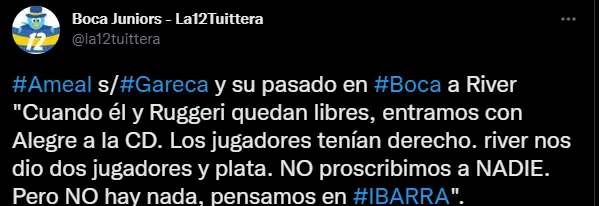 Uno de los nombres apuntados por Juan Román Riquelme ha sido Ricardo Gareca. Sobre esta situación Jorge Ameal reflexionó: “No proscribimos a nadie. Pero no hay nada, pensamos en Ibarra”. Está claro también que es un mensaje destinado hacia adentro. Está claro también que Boca está buscando un entrenador de cara a la próxima temporada.