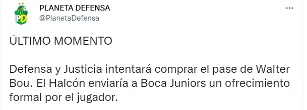 El mercado de pases esta por arrancar y en Boca quieren tener el mejor equipo posible para entregarle a Sebastián Battaglia de cara a la Copa Libertadores del año que viene. Sin embargo, en las últimas horas surgió el rumor de que Walter Bou, que debe volver al Xeneize en enero, tal vez no lo haga y siga permaneciendo a Defensa y Justicia.