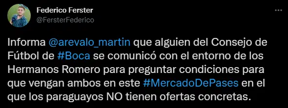 Boca quiere sumar a su plantel profesional una gran cantidad de jugadores de jerarquía para competir en el plano internacional. En las últimas horas se conoció el nombre del futbolista que pretende sumar Juan Román Riquelme a la institución xeneize. Además de sumar a Ángel Romero, el club pretende sumar a su hermano Óscar Romero.