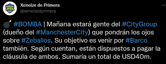 Según la información que se filtró en las redes sociales, desde el City Group están siguiendo con mucha firmeza a Valentín Barco y Exequiel Zeballos. Por ese mismo motivo, mañana habrán algunos emisarios observando el partido en La Bombonera. Aunque Exequiel Zeballos tenga que ingresar seguramente desde el banco de los suplentes.