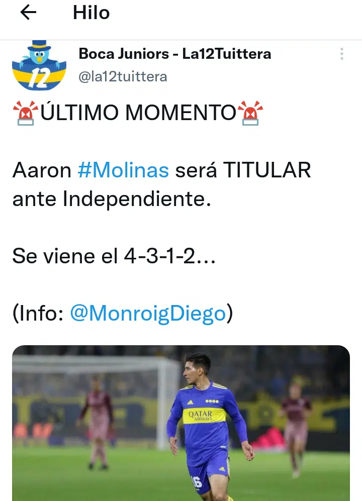 Esta semana, se especuló mucho con la formación de Boca para visitar a Independiente. La decisión de Battaglia que alegró a todos es que Aaron Molinas irá desde el inicio en el clásico ante el “rojo”. El juvenil es uno de los favoritos de la gente y que se viene ganando el lugar por su desempeño en el campo. Mañana tendrá la oportunidad de demostrar que está a la altura.