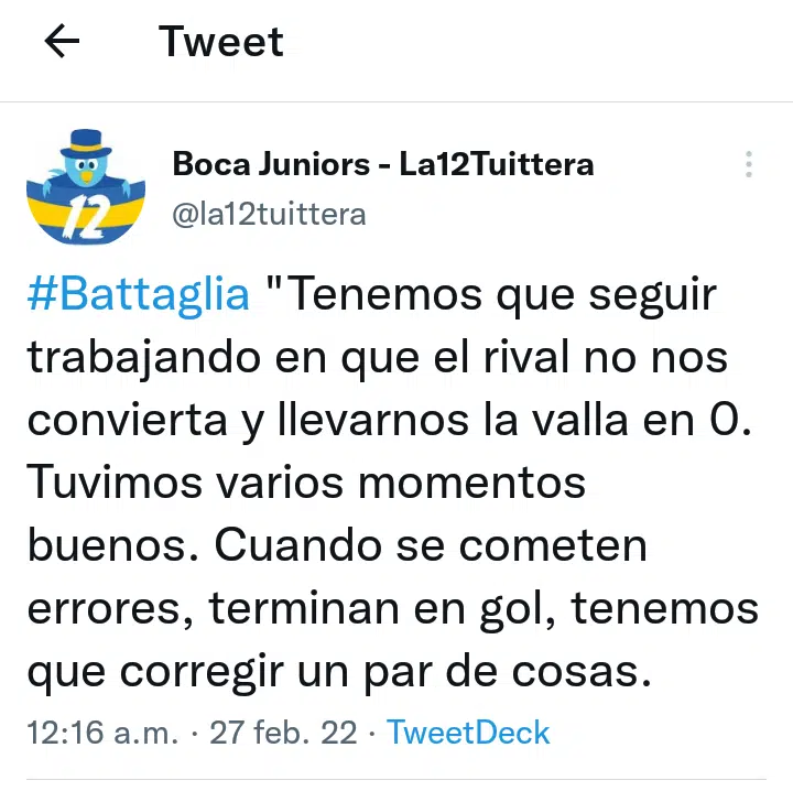 Sebastián Battaglia no se fue para nada conforme, fue muy crítico y pasó factura declarando: “Tenemos que seguir mejorando en que el rival no nos convierta, llevarnos la valla en 0”. No es la primera vez que se refiere a este tema, el entrenador de Boca busca buscando la manera en que se pueda cuidar el resultado, para no perder puntos.