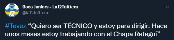 Tras anunciar su retiro de la práctica profesional de fútbol, Carlos Tevez afirmó que seguirá ligado al deporte, pero desde otro lugar. En una nota para el programa de Alejandro Fantino, el exjugador de Boca manifestó que quiere ser director técnico, sueña con comandar el plantel de Brandsen 805 y además está trabajando con una figura del deporte argentino.