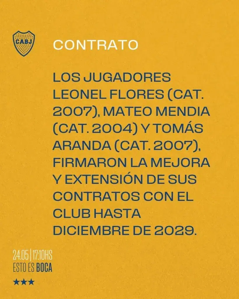 Y allí es donde aparecen los nombres de tres juveniles que renovaron sus contratos: Mateo Mendía, Leonel Flores y Tomás Aranda. Los dos últimos todavía no debutaron en Primera División, pero vienen destacándose en la Reserva, mientras que el primero de ellos hace tiempo debutó y ya tiene un puñado de partidos con el primer equipo.