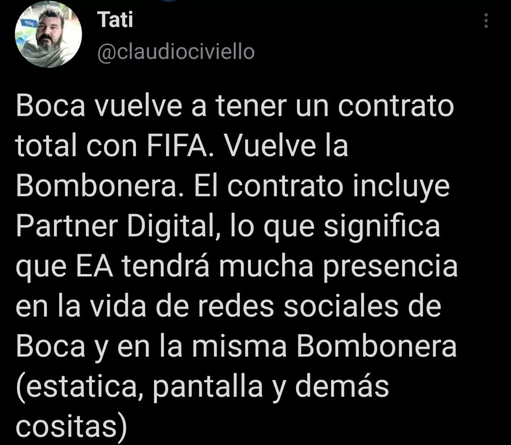 Recordemos que el conjunto de la Ribera firmó en 2018 un convenio de exclusividad con Konami, la otra gran marca líder en videojuegos de fútbol. Dicho contrato obligó a que EA Sports no pueda utilizar nada relacionado a la marca Boca Juniors. Como iniciativa del exdirigente, Mario Pergolini, el Xeneize rompe esa exclusividad para colaborar nuevamente con FIFA y ser participe de uno de los pasatiempos más populares del mundo.