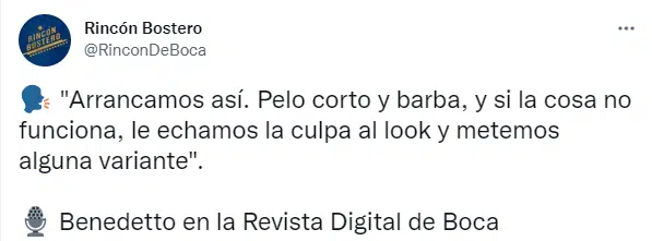 Durante su estadía en el Xeneize, cuando brilló haciendo goles de todos los colores, Benedetto lució su clásica “pelada”. Pero luego se dejó crecer el cabello y en toda su etapa en Europa fue alternando distintos peinados. “Arrancamos así. Pelo corto y barba, y si la cosa no funciona, le echamos la culpa al look y metemos alguna variante“, comentó en diálogo con la revista digital de Boca.
