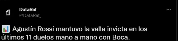 ¿Cuál es el dato del arquero titular? Durante los últimos once encuentros de eliminación directa que jugó Boca, Agustín Rossi acumula 0 goles en contra. Para un equipo siempre es fundamental la tarea que se pueda realizar de manera defensiva. Eso también le da una garantía al equipo xeneize para poder tener seguridad en estos encuentros.