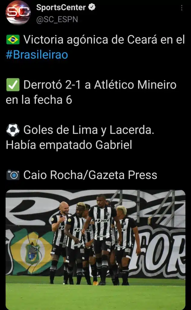 A ello, se le suma que no logró sumar los tres puntos por segundo partido consecutivo. Recordemos que en Brasil no se paró el fútbol local por la Copa América, y que ya llevan disputadas seis fechas. De esas jornadas, el equipo de Belo Horizonte no consiguió el triunfo en la mitad. La derrota del jueves frente a Ceará, uno de los más débiles del campeonato y que no había ganado hasta allí, preocupa al conjunto dirigido por Cuca.
