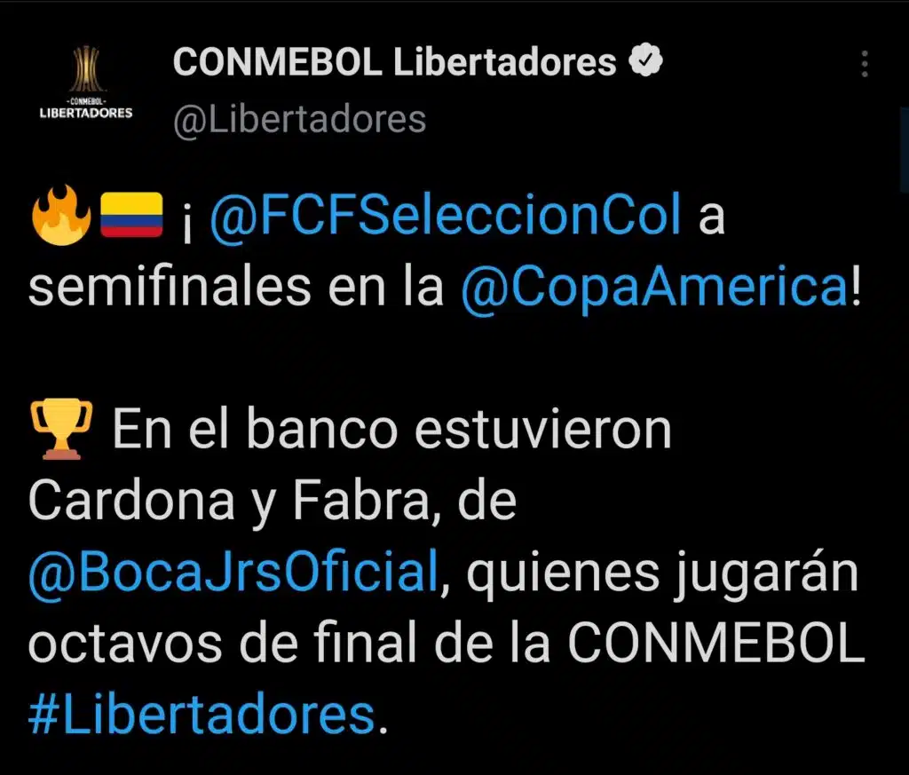 Luego de la victoria de ayer de Colombia ante Uruguay, se confirmó lo que en Boca se temía. Frank Fabra y Edwin Cardona no llegarán a tiempo para el partido de ida frente a Atlético Mineiro, por lo que Miguel Ángel Russo tendrá que buscar la manera de suplirlos. Si bien no estuvieron con el plantel desde el inicio de la pretemporada, el entrenador contaba con ellos para la reanudación de la Copa Libertadores.