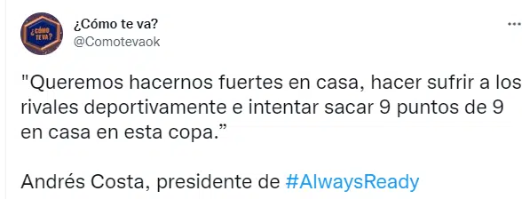 A falta de días para que arranque el torneo, la Copa Libertadores ya empezó a jugarse afuera de la cancha. Andrés Costa, presidente del Always Ready de Bolivia, palpitó lo que será el enfrentamiento contra Boca en el Grupo E y, en diálogo con el programa radial ¿Cómo te va?, dejó una advertencia que sorprendió a todos los hinchas del club de la Ribera.