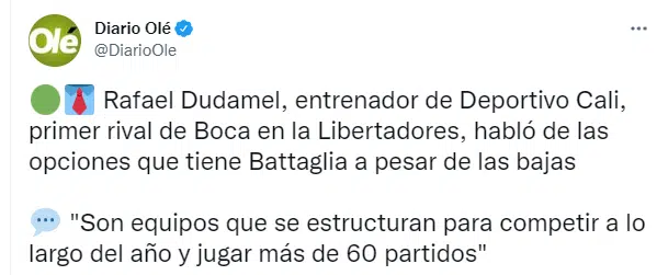 Boca quiere dejar atrás lo que fue el flojo empate por 2-2 ante Arsenal en La Bombonera y ya se mentaliza en el partido de mañana, el debut de la Copa Libertadores. En la previa al encuentro, Rafael Dudamel, entrenador de Deportivo Cali, conversó con los medios de comunicación y dejó un mensaje que hizo mucho ruido en toda la gente.