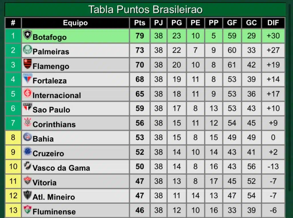 El domingo por la tarde, se dio por finalizado el Brasileirao que dejó a Botafogo como campeón. Y por ende, el torneo de Brasil también dejó a los clasificados a las copas internacionales.