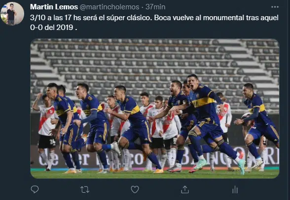 Boca ya tiene la confirmación oficial. Desde la Liga profesional de fútbol dieron a conocer cuando se jugará el partido del año. El Domingo 3 de Octubre a las 17 horas, se disputará el superclásico de nuestro país frente a River en el estadio Monumental, luego de dos años sin jugar en ese escenario ante el eterno rival de toda la vida.