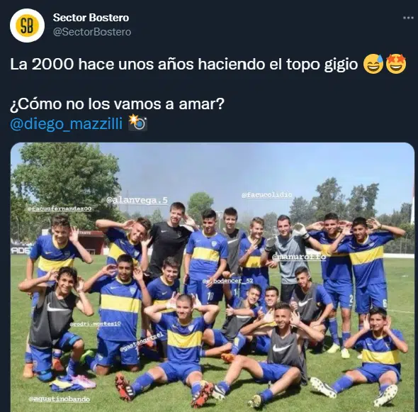 La foto de hace algunos años se hizo viral en el día de hoy. La misma fue compartida por Diego Mazzili uno de los grandes talentos en materia de ojear juveniles con potencial. Dentro de esa camada de nacidos en el 2000 se destacan Agustín Almendra, Marcelo Weigandt y Aaron Molinas. Pero otros talentos nacidos en ese año son Agustín Obando, Manuel Roffo y Facundo Colidio.