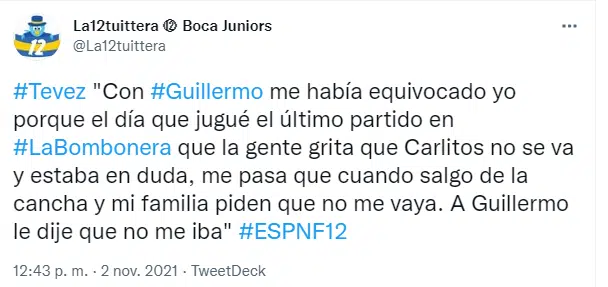 En una mañana muy movida para el Mundo Boca, con Carlos Tevez en ESPN aparecieron bombas por todos lados. Allí, recordó los cortocircuitos que tuvo con Guillermo Barros Schelotto: “Con Guillermo me equivoqué yo, le dije que cuente conmigo para la próxima temporada porque no me iba, pero ya en casa tenia decidido irme”.