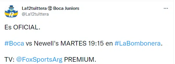 El partido entre Boca Juniors y Newell’s que debía jugarse el domingo desde las 21.30 por la 23ra. fecha de la Liga Profesional y se suspendió por lluvia, fue postergado para el martes a las 19.15, en La Bombonera. Así lo informó la Liga Profesional que en un primer momento había decidido pasar el partido para el lunes, aunque tras conversaciones con la televisión decidió correrlo al martes.