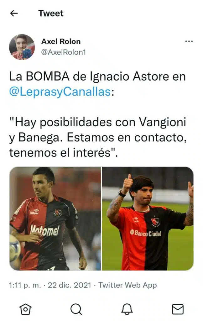 Éver Banega es un jugador que en Boca desean que regrese a jugar, pero otro equipo argentino estaría negociando para sumarlo en 2022. El mediocampista rosarino, que actualmente milita en el Al-Shabab, y que debutó en Boca allá por el 2007 esta cerca de regresar al fútbol argentino para jugar en Newell´s. Es una bomba que tiró Ignacio Astore, presidente de la “lepra”, la cual no fue oficializada.