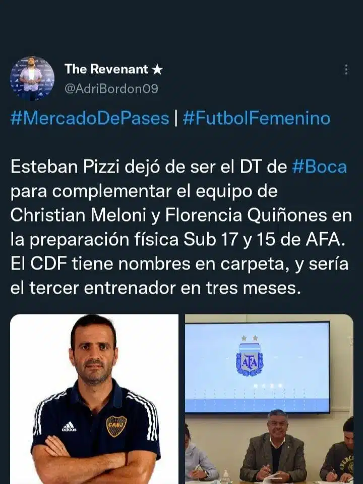 Esta noticia se dio a conocer, Las Gladiadoras pronto volverán a los entrenamientos y ya hay varios nombre de entrenadores en carpeta. Deja el equipo ganando dos título en poco meses. Si bien es cierto que Pizzi llegó a mitad de Torneo, también aportó para que el equipo femenino de Boca también pueda clasificar a la próxima Copa Libertadores.