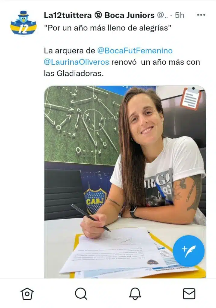 Entre los que se van, también están los que se quedan. Se renovaron contratos para seguir contando con jugadores y jugadoras para este 2022. Las Gladiadoras anunciaron una noticia que los hinchas esperaban. Laurina Oliveros, la gran arquera que tiene Boca renovó su contrato por un año mas y la noticia fue anunciada por las redes sociales oficiales del club.