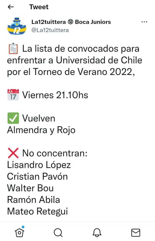 La otra cara de la convocatoria de Sebastián Battaglia es quienes no fueron citados. Son cinco jugadores en total los que quedaron afuera. Por motivos distintos, no serán parte de la delegación de Boca que enfrenten a Universidad de Chile. Algunos no son novedad y otros prácticamente están fuera del club. Será la segunda presentación del “xeneize” de lo que va del año.