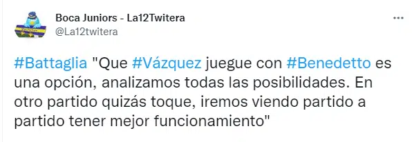 “Que Vázquez juegue con Benedetto es una opción, analizamos todas las posibilidades. En otro partido quizás toque, iremos viendo partido a partido tener mejor funcionamiento“, comentó el entrenador al finalizar el partido. Sin lugar a dudas, los delanteros son dos jugadores muy queridos por la gente de Boca y quieren verlos juntos.