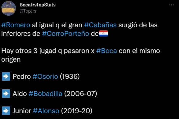 ¿Cuál es esa estadística tan particular? Al igual que el futbolista Roberto Cabañas, uno de los grandes ídolos de la institución el dato que lo vincula a Oscar Romero es que ambos salieron del mismo club: Cerro Porteño. Sin embargo, al igual que Junior Alonso ambos se consagraron campeón con la institución. Casualmente, en la última copa Libertadores también había un paraguayo en el plantel.