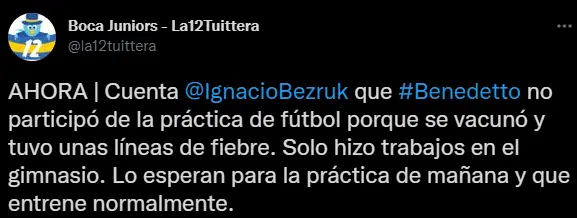 ¿Cuál fue la razón de su ausencia? Simplemente por una cuestión médica. Según informó el periodista Ignacio Bezruk, el delantero xeneize levantó unas líneas de fiebre. Esto fue debido a que en el día de ayer adquirió la dosis de refuerzo contra el COVID. De hecho, su reemplazante fue Nicolás Orsini. Aunque se espera que mañana se sume junto a sus compañeros.