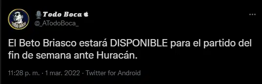 ¿Qué futbolista retornará el domingo a vestir la camiseta xeneize? El nombre en cuestión es Norberto Briasco. El delantero quien había tenido diversas molestias en el tobillo no había tenido la continuidad deseada durante este año. Aunque en esta ocasión seguramente aparezca entre la nómina de futbolistas concentrados para el encuentro ante Huracán.