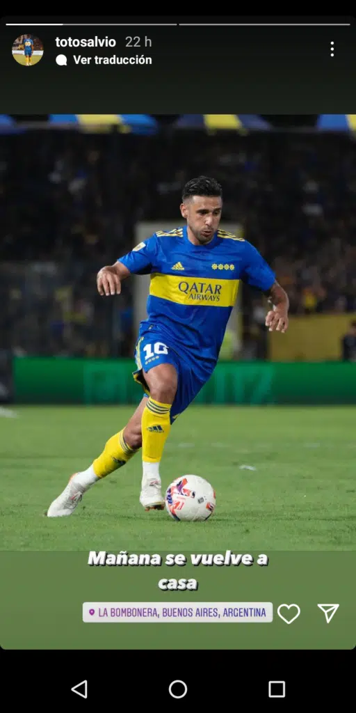Toto Salvio es uno de los jugadores que perdió su lugar y éste domingo irá al banco de suplentes, aún así, el volante se mostró su ilusión para el partido de hoy: “Se vuelve a casa”. El jugador bajó su nivel notablemente y es por eso que Battaglia decidió que fuera parte del banco de suplentes ante Huracán. El 10 de Boca buscar recuperar su mejor versión.