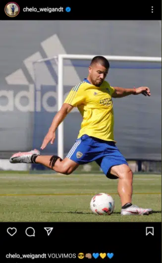 El lateral derecho Marcelo Weigandt recibió el alta médica en Boca y podrá comenzar a trabajar a la par del plantel y así allanar el camino de su retorno en el equipo de Sebastián Battaglia. El jugador mostró su felicidad en redes sociales con una imagen del entrenamiento y un mensaje más que alentador para el Xeneize: “Volvimos“.