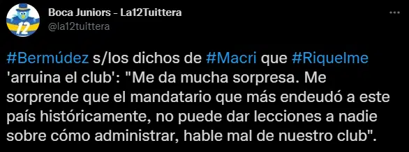 Esta semana Boca vivió una situación bastante particular en relación al clima político. Por un lado, el ex presidente del club Mauricio Macri volvió a atacar con dureza a Juan Román Riquelme. Sin embargo, en la previa del partido ante Estudiantes hubo una respuesta de manera oficial por parte de Jorge Bermúdez, quien integra el consejo de fútbol.