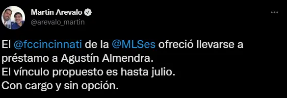 El motivo de la venta es que el jugador tiene un contrato hasta mediados de junio del próximo año. Debido a esto, es que la propuesta será rechazada en las próximas horas. Aunque desde la institución afirman que no ha llegado propuestas por el mediocampista. Por otro lado, Agustín Almendra no tiene intención de renovar el contrato con la institución.