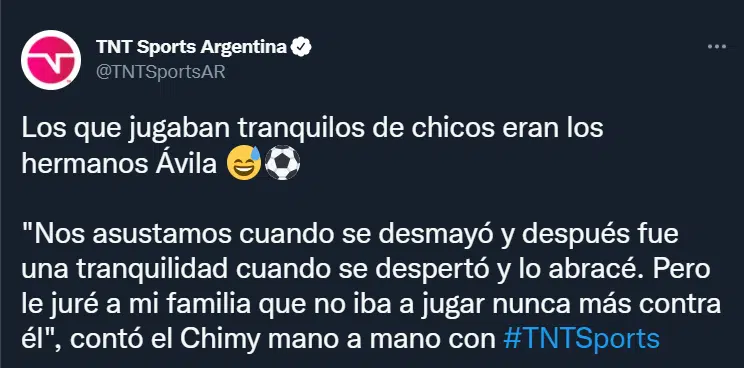 En una entrevista con TNT SPORTS el futbolista que se desempeña en el Osasuna de España rememoró una situación que vivió con su hermano, Gastón Ávila, cuando eran menores. El Chimy también relató que el actual defensor de Boca, tras su préstamo por Rosario Central, iba a ir a jugar a La Liga, sin embargo, la negociación se vio frustrada por el llamado del Xeneize.