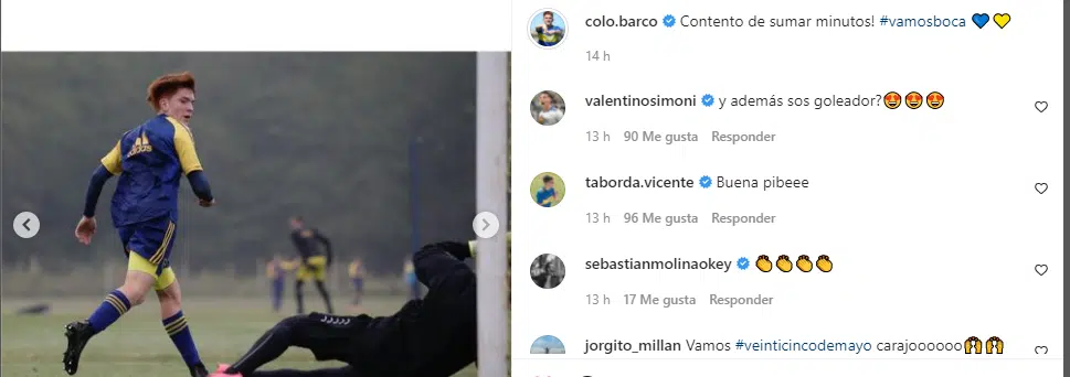 El lateral izquierdo de 17 años volvió a sumar minutos en el equipo de Ibarra y sin dudas lo disfrutó. En su cuenta de Instagram el defensor comentó: “Contento de sumar minutos“. Por su parte, muchos hinchas lo tomaron como una indirecta hacia el cuerpo técnico, por no tenerlo en cuenta en los últimos partidos del equipo campeón del año pasado.