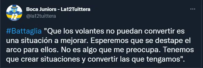 Por otra parte, y en referencia a los resultados acumulados hasta el momento, el DT boquense recalcó que el equipo al debe tener regularidad y mantenerla en el tiempo. Además, fue contundente con los periodistas presentes y sostuvo que debía existir coherencia para analizar, ya que el Xeneize no era el mejor por ganar, ni el peor por perder.