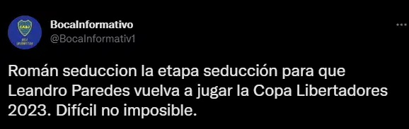 ¿Quién es el jugador en cuestión? Nada más ni nada menos que Leandro Paredes. Según las diversas informaciones que se fueron conociendo en estos días, Juan Román Riquelme pretende que el volante de la selección argentina sea refuerzo en el 2023. Además de tener la participación en la copa Libertadores, es un año donde se define el futuro del club.