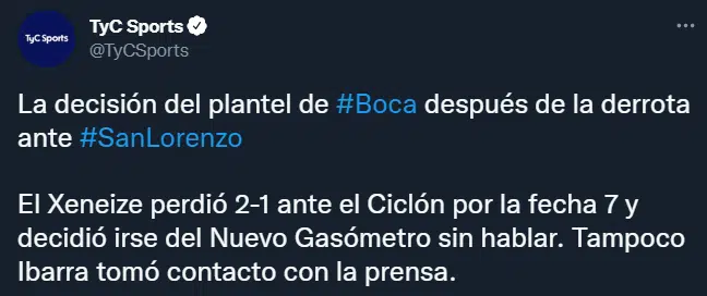Boca cayó por 2-1 ante San Lorenzo en la séptima fecha de la Liga Profesional 2022 y sumó su tercera derrota consecutiva en el campeonato. El triplete técnico Xeneize arrancó su interinato con el pie izquierdo y al igual que el plantel tomó una polémica decisión, que llamó la atención de todos los periodistas presentes en el Nuevo Gasómetro.