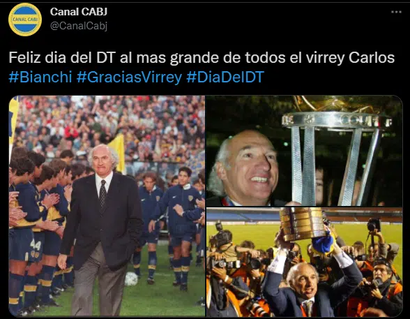 El 13 de Noviembre es considerado el día del director técnico de fútbol. En las redes los hinchas de Boca mandaron su mensaje dirigido principalmente al entrenador más exitoso: Carlos Bianchi. Lo que más llamó la atención, es que desde la cuenta oficial de Boca no se hizo ninguna mención sobre el tema al respecto. ¿Habrá enojo con algún entrenador?