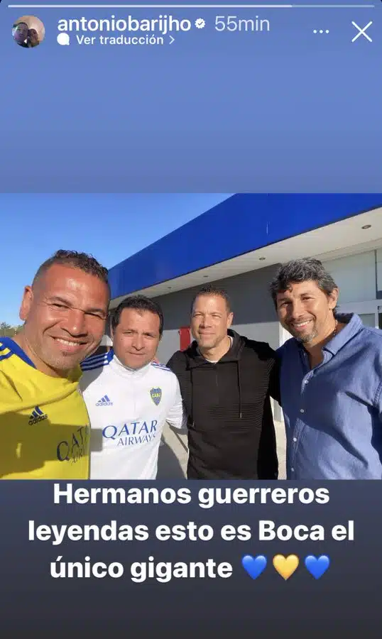 El Chipi compartió una selfie junto a Marcelo Delgado, Óscar Córdoba y Jorge Bermúdez. “Hermanos guerreros, leyendas, esto es Boca. El único gigante”, escribió Barijho sobre la imagen que subió a la historia de su cuenta oficial de Instagram en compañía de los exfutbolsitas con los que salió campeón del mundo vistiendo la camiseta Xeneize.